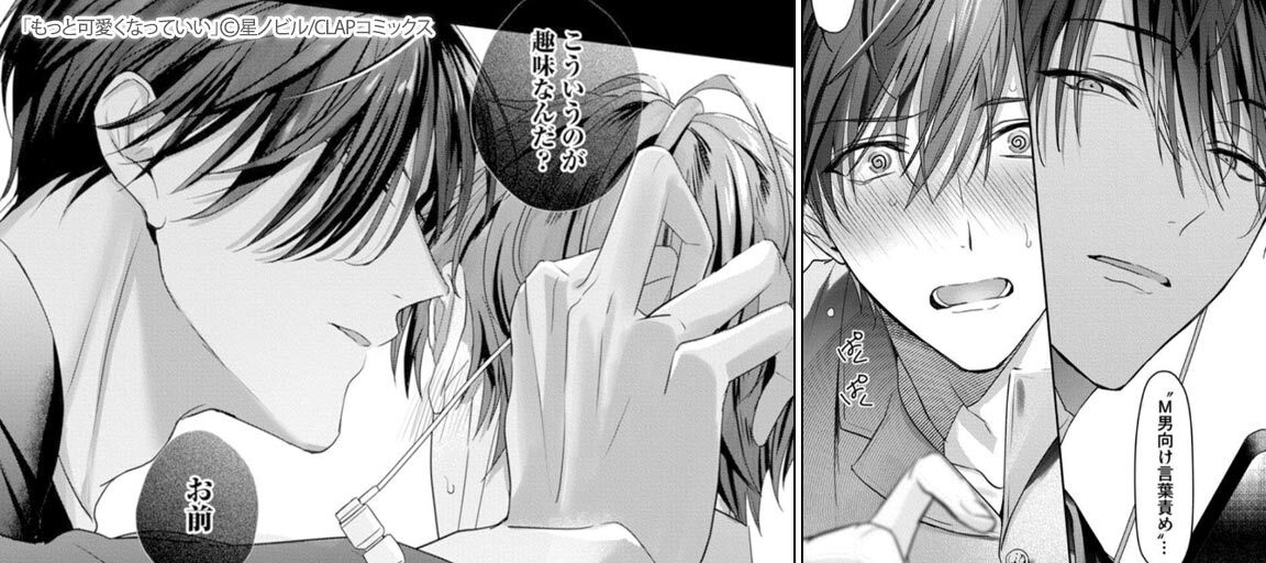 【M男向け言葉責めボイス】をおかずに一人エッチしているところを見られてしまった真中。すると剣崎はボイスを再現するような甘い言葉責めと愛撫で、真中をたっぷり“可愛がり”始めて…