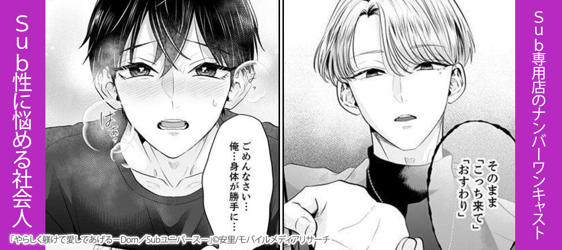 Subの望月愛斗はパートナーと別れたばかり。友人から風俗の利用を勧められ、ドキドキしながらホテルで待っていると、やってきたのはモデルみたいに整った顔立ちの人気No,1 ・Domの聖也。 優しげな雰囲気に安心してプレイを始めてみると、なぜか聖也がいきなり豹変して…