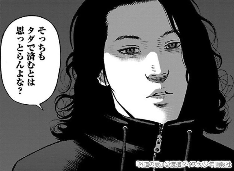渡邊ダイスケ先生によるクライム・バイオレンス漫画です。少年画報社『ヤングキング』2014年10号から2016年7号まで連載された『善悪の屑』の第2部として『外道の歌』にタイトルを変更し、同誌2016年8号から引き続き連載されています。劇中に登場する事件は話題になっており、今回は本作の魅力と登場人物を中心にご紹介します。