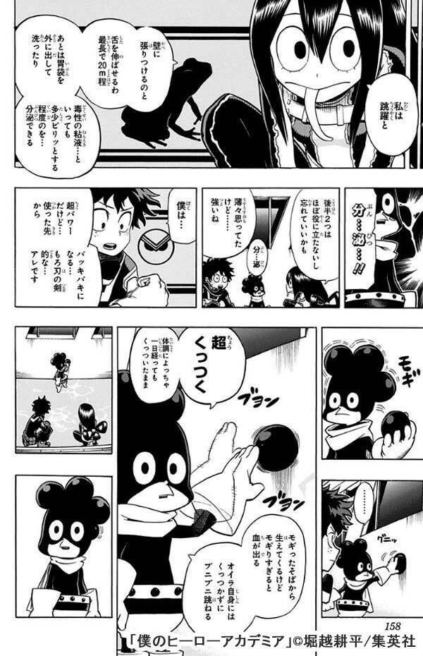 “個性”という一人一つ持っている超能力のようなもので、主人公たちは最強のヒーローとなるべく切磋琢磨していきますが、使い勝手がいい“個性”や、使いみちがよく分からない“個性”、副作用が激しい“個性”など能力は様々です。 一人ひとり違う“個性”を持っていて、それをどう活かして試練を乗り越えていくのかも本作の注目すべき見どころとなっています。