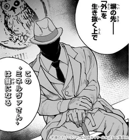 エマたちを農園の外まで導いた人物。本名はジェイムズ・ラートリー。 食用児たちに犠牲を強いる理不尽な仕組みに耐えかね、ウィリアム・ミネルヴァという偽名を名乗り、食用児に未来を選ぶきっかけを与えるため農園に納める本に細工を施し寄贈していた。 ラートリーは1000年前に鬼と「約束」を結んだ一族で、二世界間の調停役として代々約束を受け継いできた。ジェイムズは第35代当主。 子供達に安全なシェルターや集落、人間の世界へ渡る為のエレベーターなどを提供しようとしたが、腹心だった弟に裏切られ、一族に命を狙われる身となってしまった。現時点で生死は不明。