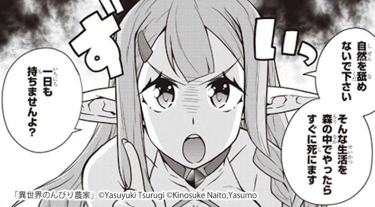 何をどうすれば不便なく生活が送れるようになるか、火や水を手に入れるにはどうすればよいか、といった疑問に対して、主人公は一つ一つ問題を丁寧に解決していきます。 魔法で何でも解決、という展開はなく、作物一つを育てるにも色々なやり方を試し、どの方法なら効率的に収穫できるか調べていきます。異世界ではありますが、まるで本当に現実の世界で農業に挑戦しているような主人公の行動は、現実味があって感情移入もしやすくなるでしょう。 また、たとえばエルフなら一般的なイメージで森と共に暮らすため火を嫌う、などの性質を連想しがちですが、本作ではエルフも生活のために火を活用していますし、ファンタジー世界ではドワーフなどが担当しがちな鍛冶も行います。あくまで基本生活がベースに考えられているリアルさが、本作の特徴です。 とはいえリアル一辺倒なわけでもなく、前述のように吸血鬼、天使、エルフなどファンタジー世界に登場するような種族も多く出てくるため、異世界ものとしても楽しめる作品になっています。