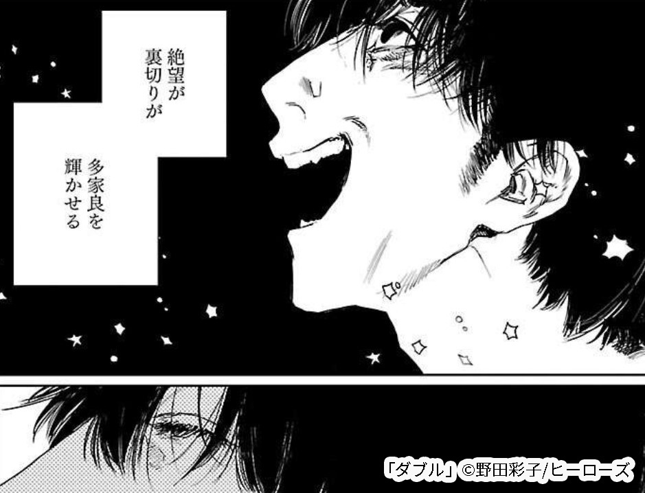 多家良が役に入り込んで演じるシーンは、圧巻の一言です。普段はマイペースでだらしない多家良ですが、役に入ったとたん、その役者になりきって、まるで別の人格のようになってしまいます。 罪悪感に苛まれる犯人の苦しむ顔、皮肉なキャラが道化師を演じる様子など、本当に別人の魂が入り込んだ様子です。その描写を見れば、「多家良は天才だ」という友仁の評価も納得できてしまいます。