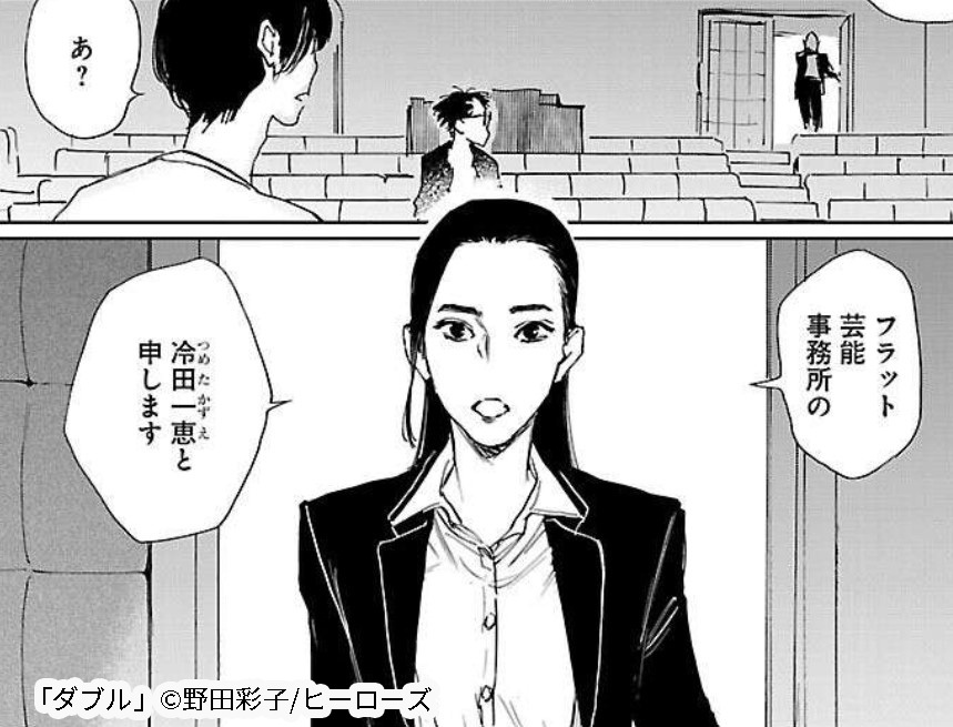 フラット芸能事務所の女性マネージャーであり、多家良を事務所にスカウトした人物です。多家良の舞台を見て、多家良の演技に惚れ込み、声をかけました。できる女性という雰囲気で、多家良が事務所に入ってからは多家良のマネジメントをこなしています。 多家良を採用した理由を直感ではなくきちんと説明できる点からも、論理的で頭が良い、仕事ができる女性であることがうかがえます。多家良をもっと多くの人の前で見てもらいたいと、心から思っている様子です。