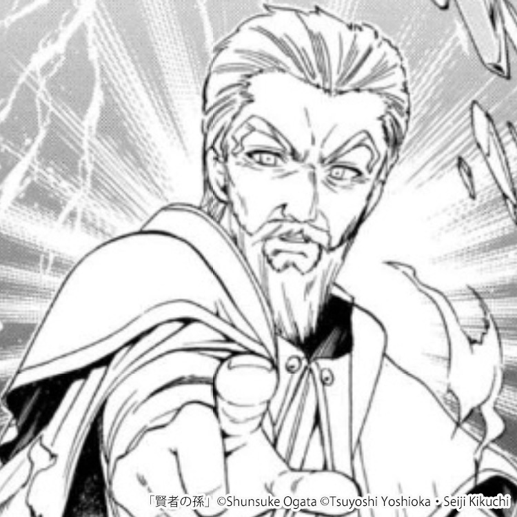 シンの育て親です。赤ん坊の頃のシンを拾って育てあげ、魔法学院に入学させます。お茶目な言動をときおり見せる一方で、実は世界中でその名を知らない者がいないほどに魔法に優れた賢者でもあります。 シンに対しては孫同然の感情を抱いており、シンが政治的な道具にされることのないよう身を案じています。シンを最強レベルの実力者に育て上げましたが、彼に常識を教えることを一切してきませんでした。 スピンオフ作品『賢者の孫 Extra Story 伝説の英雄達の誕生』では主人公を務めています。