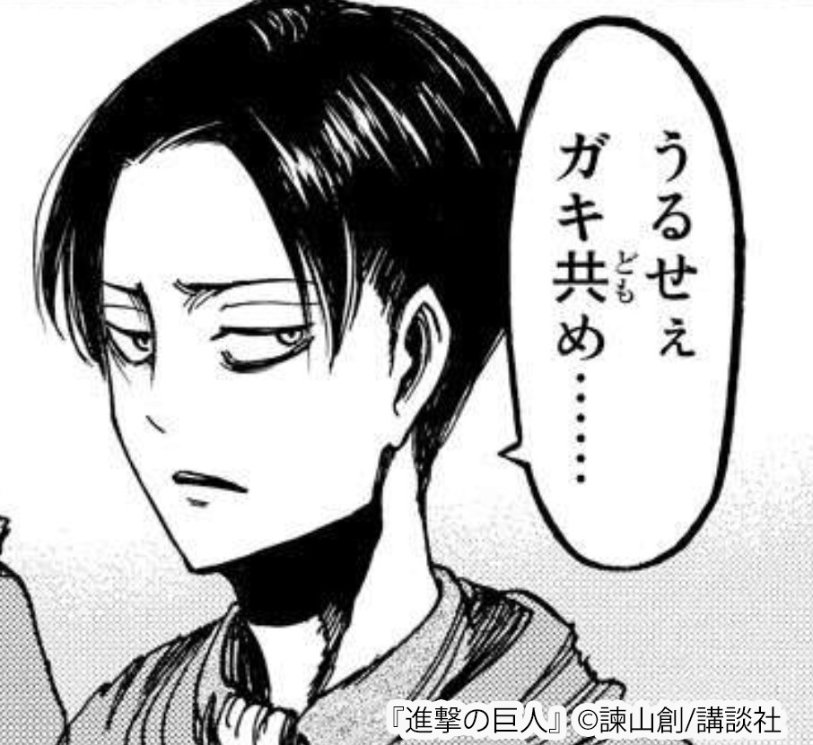 調査兵団最強の戦闘能力を持つ兵士長で、“人類最強の兵士”と言われています。もともとは都のごろつきで、エルヴィンと出会い調査兵団に入団しました。 一瞬で巨人を複数倒す圧倒的な強さを見せ、作戦成功のためには手段を選びません。エレンが裁判にかけられたときは、拘束されているエレンに暴行し、巨人化の力を持つエレンを扱えるのは自分だけだと主張しました。 極度の潔癖症で拠点は徹底的に掃除し、戦闘中にも巨人の返り血を拭います。しかし仲間思いの一面もあり、部下の死の際には、血に濡れるのもいとわず部下の手をとりました。
