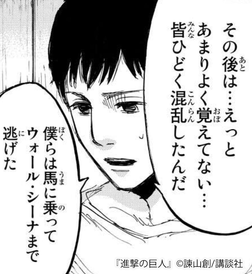 エレンやミカサのことを子供の頃から知っており、巨人の危機もなく平和な時代は勤務中に酒を飲んでいました。 845年の超大型巨人の襲来時は、いち早くエレンの家に駆けつけます。エレンの母カルラを助けようとするも、恐怖に襲われ、エレン・ミカサと共にその場を逃れました。 カルラを助けられなかった自責の念から鍛錬を重ね、トロスト区駐屯部隊長にまで昇進しています。エレンとミカサのことをいつも気にかけている、心優しい人物です。