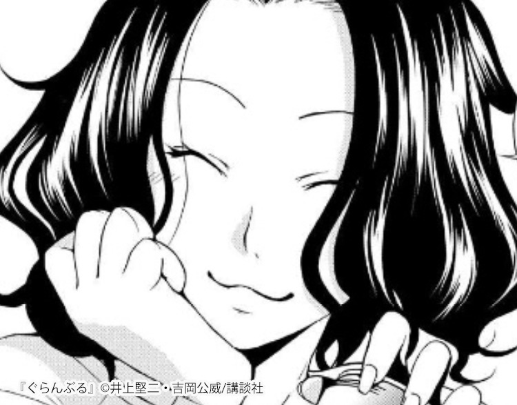 千紗の姉で伊織のイトコです。ダイビングショップ"Grand Blue"のインストラクターをしています。 腰まで届く長い髪と抜群のスタイルを持つ上、いつもニコニコ優しい癒し系の美女です。かなりまともなタイプかと思いきや、重度のシスコンで千紗の脱いだ上着のにおいをかいで悦に入ることもあります。 普段Grand Blueで見慣れているせいか、全裸で酒盛りをする男性陣を見ても平然としています。