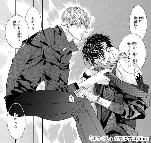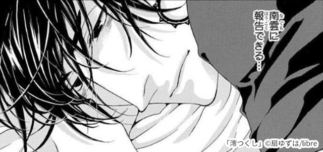 澪と南雲の濃厚なエロシーンも今作の魅力の1つです。 澪は南雲に抱いて欲しくて積極的に彼に奉仕していきます。そんな澪の気持ちを知ってか知らずか、南雲は容赦なく澪を抱いていきます。 『澪つくし』の第一話を語る上で欠かせないのが南雲による窒息プレイです。5年前、澪は恋人に傷害事件を起こして以降、勃起不全になっていました。そのため澪は受けの形で南雲との行為に及んでいきます。 行為中、南雲が澪を後ろから激しく犯していく中で、南雲は彼の首を絞め始めました。澪は苦しさのあまり苦痛の表情を浮かべますが、徐々に快楽の扉が開きはじめ、ついには勃起したのち射精してしまいます。 事後、恍惚の表情を浮かべる澪とは対照的に淡々と仕事の話をする南雲がとても印象的なシーンです。ドS政治家とドM天才ハッカーの激しい絡み合いをぜひご堪能ください。