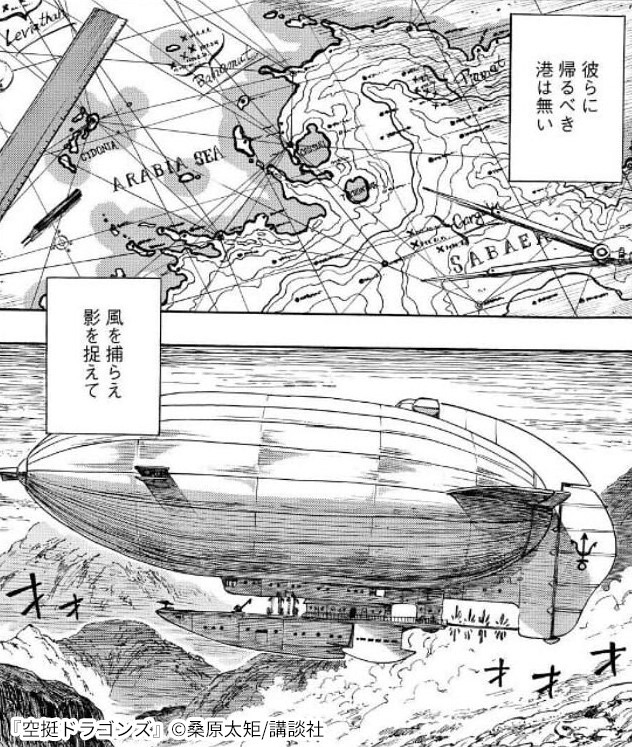 『空挺ドラゴンズ』の世界観は、細かいところまでこだわりが垣間見えるように絵が描かれています。 その中でも、特にこだわりがあるのは龍の存在についてです。ファンタジー世界では龍は幻の生き物として、描かれることが多いです。ですが、『空挺ドラゴンズ』では龍が日常的な生き物として描かれています。市の上空に現れると人々へ被害が出るため、災害や害獣として龍が存在しており、懸賞金がかけられている場合もあります。 また、龍のデザインも既存のデザインとはかけ離れており、中には本当に龍なのかと疑ってしまうような姿をした龍も存在しています。