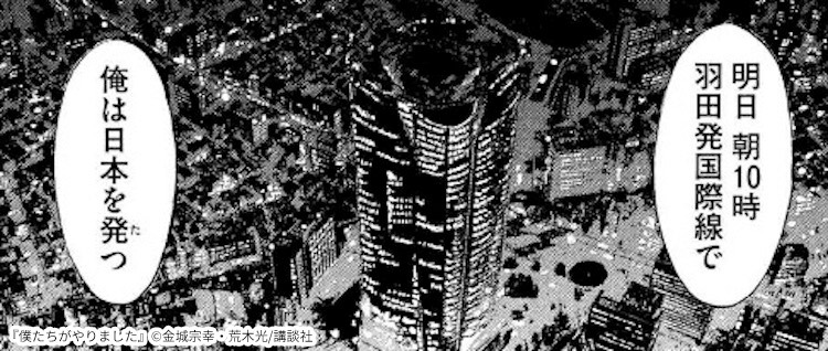 10名以上の死者と、多くの怪我人を出してしまったその事件により、トビオたちはただの高校生から殺人犯へと転落してしまいました。 小阪の似顔絵が容疑者の顔としてテレビで放送されたり、連日事件の報道が流れたりする中で、トビオたちは危機感を募らせていきます。自分たちだけの秘密にしていればバレない、と当初は考えていましたが、それも限界があると気づき、小阪は国外逃亡を画策します。伊佐美はグループを抜けたため、残ったトビオと丸山がそれに同意し、空港で待ち合わせました。 しかし約束の時間になっても丸山は現れず、空港に到着したトビオが見たのは、容疑者として確保されている小阪の姿でした。残されたトビオは、必死の逃亡劇を始めます。