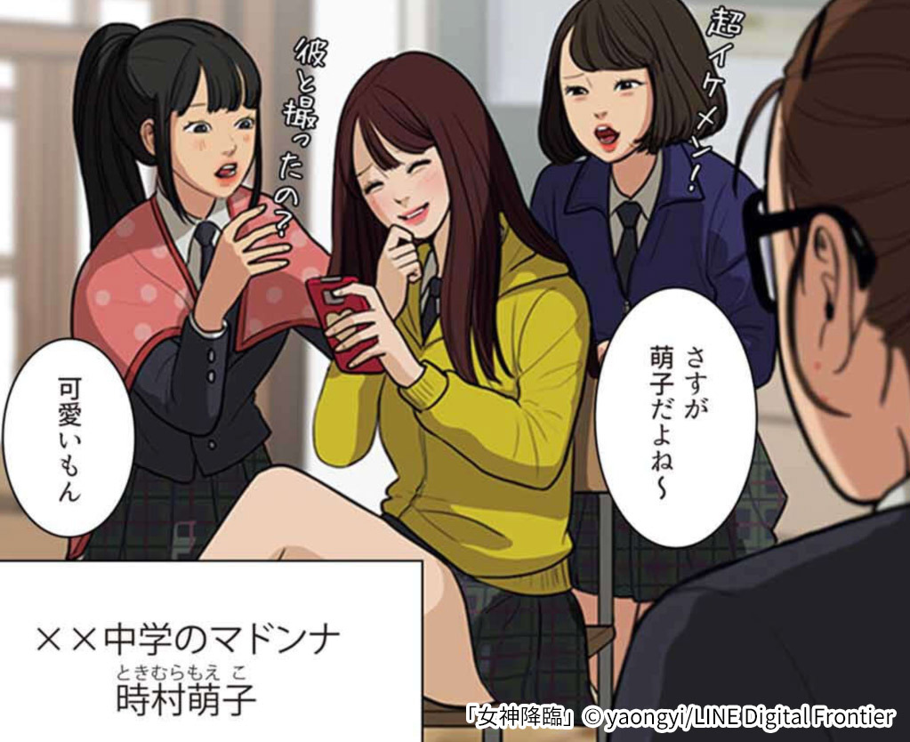 『女神降臨』は、韓国の人気WebサイトNAVER WEBTOONで配信されていた作品です。現在『女神降臨』は世界規模で配信されていて、日本ではINEマンガで読むことができます。 本作はLINEマンガで人気の作品の一つとなっていて、その人気は月刊読者ランキングで22ヶ月連続一位を取るほどです。また"次に来るマンガ大賞2019"のWEB部門では4位を獲得しました。