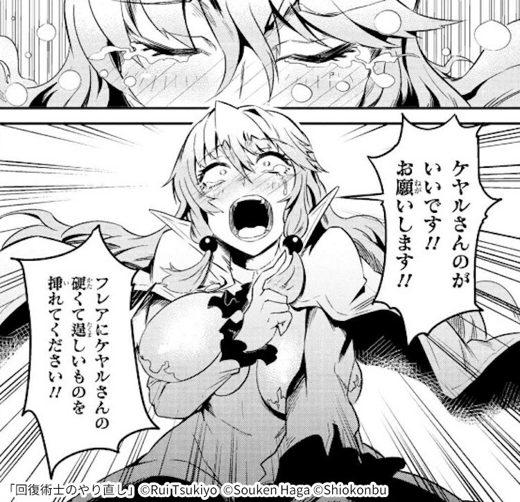 時間逆行に成功し4年前へと戻ってきたケヤルは、復讐するため、1回目の世界で手に入れた経験、知識を活用します。 薬物への耐性を早く付けるためあえて毒キノコを摂取したり、薬漬け状態で投獄されたときも脱走のため兵士たちの慰め者になったりと、茨の道ではありますが下準備を整えるのです。 やがて薬物耐性を得て、憎悪から自身の意志も取り戻したケヤルは、"術"の勇者であるフレアを辱め、復讐します。