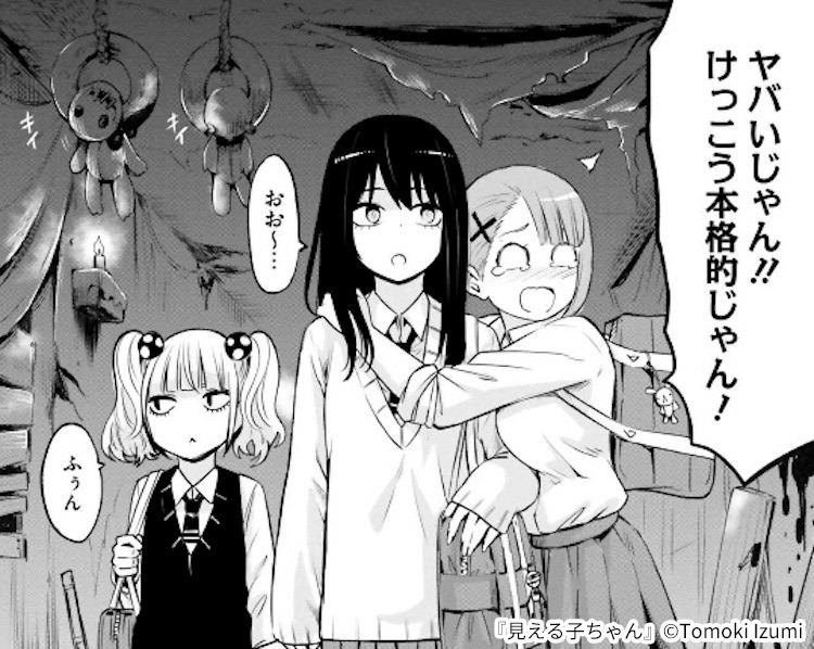 一見すると女子高生が登場する日常系のお話に思えますが、ページをめくるとヒヤッとするほど恐ろしい姿の霊が登場します。しかしそれをみこはすべてスルーし、関わらないようにしながら過ごすのです。 とはいえあくまで見えない振りをしているだけで、怖い霊は見えているため、みこはすぐ震えたり泣いたりしてしまいます。 日常に霊が潜んでいることと、それを無視し続ける女子高生という構図が面白く、既存のホラーもののように立ち向かったりしない静かな戦いが見どころです。 ホラーというジャンルではありますが、コメディ要素もある不思議な魅力に溢れた作品になっています。 ほのぼの学園コメディかと思いきや、随所で現れる霊たちが恐怖心を煽りに来るため、面白さと怖さを両方楽しめるでしょう。
