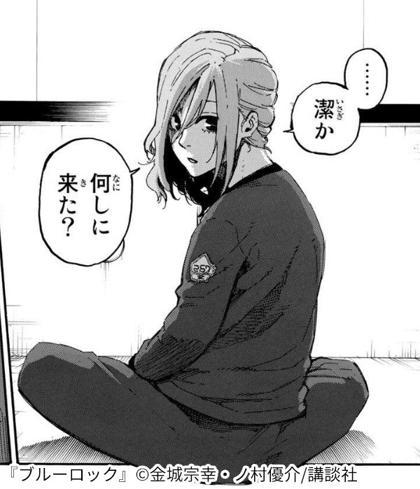 ブルーロックではトップクラスのスピードの持ち主で、攻守ともに活躍できる選手です。ブルーロックに参加する1年ほど前にケガをしてしまい、そのトラウマから、最初のうちは全力でプレーすることを拒否していました。 しかし、潔のプレーに感化され、自分の武器を惜しみなく使うことを決意します。 また、男性でありながら非常に女性らしい見た目をしているためチームメイトから「お嬢」と呼ばれることがあります。