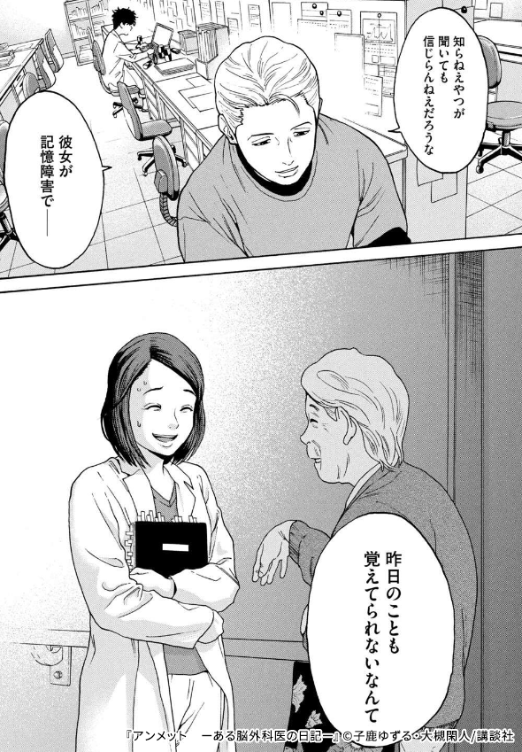 もうひとつの魅力は、ミヤビが記憶障害を抱えながらも医者として活躍するストーリーです。 朝起きると前日のことも覚えていないミヤビですが、真摯に患者さんと向き合う姿や、”自分は果たして医者といえるのか”と葛藤する姿は思わず応援したくなるものです。 また、脳外科医として働くことや記憶障害を治すことを諦めていたミヤビが、三瓶との出会いから変わっていく様子も見どころとなっています。