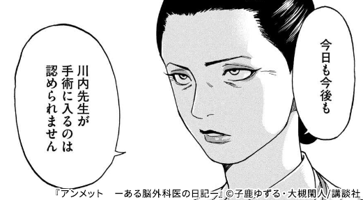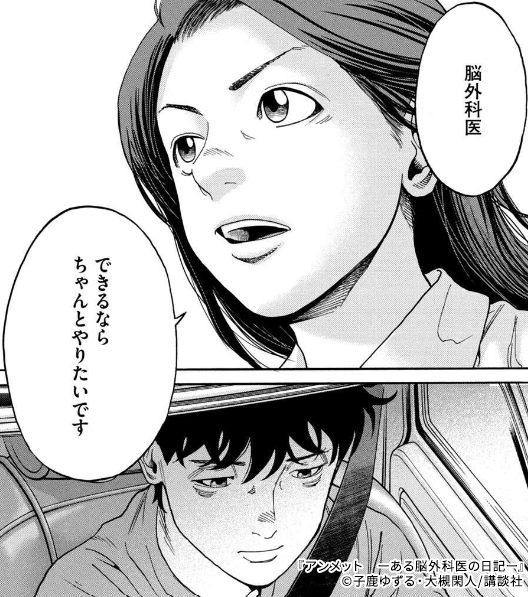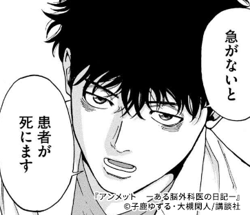 アンメットは週刊モーニングにて連載中の脳外科医をテーマにした医療マンガです。 手術をして成功すれば終わりではなく、その後の後遺症を抱えた患者と向き合うのが脳外科医の役目という観点から、病気ではなく”人”と向き合う主人公・三瓶たちの活躍が描かれています。